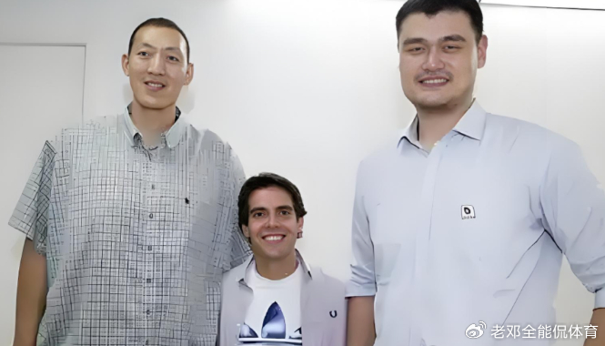 卡卡是曾经巴西队队草,身高够,颜值高,很多他的球迷不是被他球技所折服,而是被他高颜值迷的神魂颠倒。这次卡卡在国内参加活动,他有幸一睹姚明这位东方巨人风采。两位体坛巨星碰面,自然会合影。卡卡这次合影,直接把自己拍成了路人,本来身高1米85的卡卡,站在姚明和孙明明中间,感觉只有1米5高度,男神形象荡然无存。