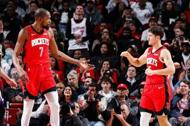 从上一场对阵太阳队开始,火箭队的进攻问题已经暴露,只是因为杜兰特的一记绝杀球,掩盖了所有问题。赛季初,火箭队用积极性和篮板球,短暂的弥补了没有一号位的短板,随着常规赛的推进,火箭队球员也不够积极了,冲击篮筐欲望下降,杜兰特一人单打,其他四名球员站着看,有空位三分也投不进,谢泼德完全提供不了帮助,担当不起第二进攻点的重任。