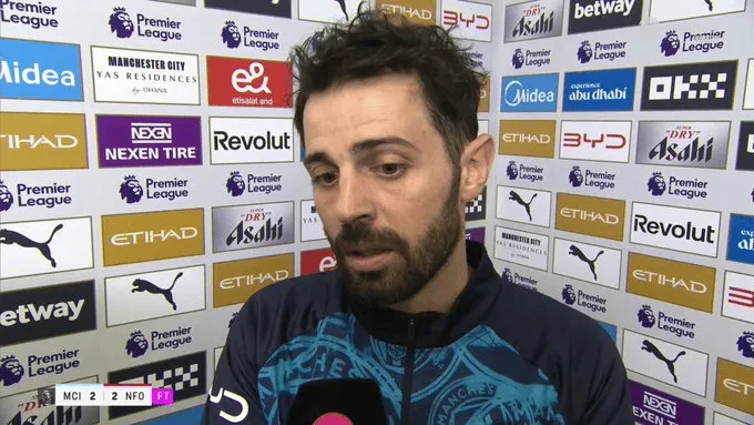 虎扑03月05日讯 曼城中场/队长贝尔纳多-席尔瓦在2-2战平诺丁汉森林的赛后,接受TNT Sport瞬采。